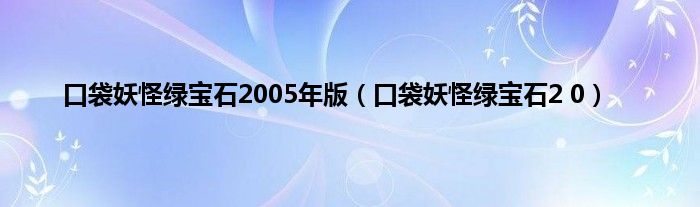 大家好,小问来为大家解答以上问题。口袋妖怪绿宝石2005年版,口袋妖怪绿宝石2 0这个很多人还不知道,现在让我们一起来看看吧!